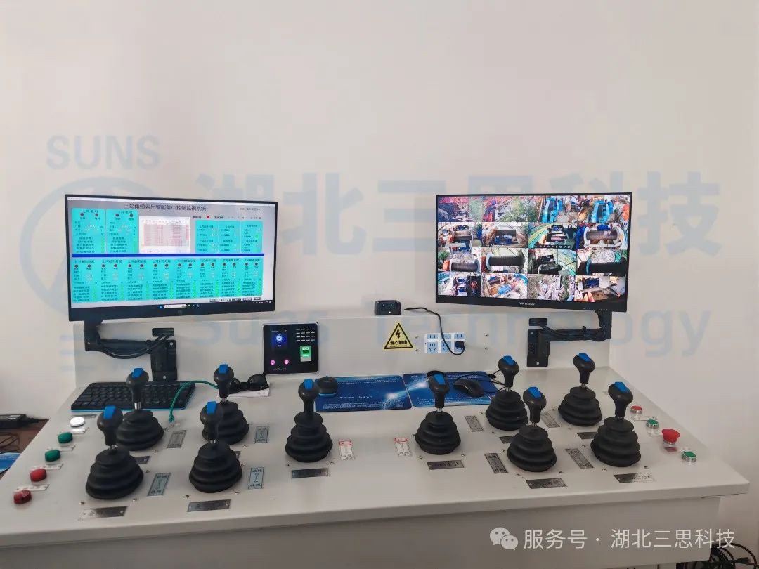 磨刀溪特大橋位于重慶市云陽縣,是重慶市高速公路開州至云陽高速(江口-云陽-龍缸段)區(qū)縣互聯(lián)互通的關鍵控制性工程,主橋為主跨360米的上承式鋼管混凝土拱橋。上部結構采用預應力混凝土先簡支后連續(xù)T梁,主跨為鋼管拱;下部結構為樁基礎+擴大基礎,交界墩為空心薄壁墩,道路設計為雙向4車道,時速80km/h。該橋江口、龍缸兩岸拱座均背靠在陡峭的山體,垂直于磨刀溪河施工現(xiàn)場,有滑坡危巖、巖石裂隙發(fā)育,現(xiàn)場施工場地狹小、危險系數(shù)高、施工難度大。因此,本項目纜索吊機采用了由湖北三思科技自主研發(fā)的纜索吊機集中控制管理系統(tǒng),使設備的操作方式由傳統(tǒng)的“一人控制一機”升級為“一人控制多機”,同時設備在運行過程中既可多機聯(lián)動,亦可單機獨動,為智能化安全管理提供有效保障。