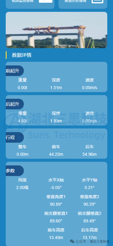本次由湖北三思科技參與的起重機(jī)安全監(jiān)控系統(tǒng)的設(shè)計(jì)、安裝的設(shè)備是一臺1000噸的單導(dǎo)梁架橋機(jī),在常規(guī)架橋機(jī)安全管理系統(tǒng)的功能上,本系統(tǒng)增加了重大安全隱患報(bào)警、掃碼解鎖等功能,屬于行業(yè)類首創(chuàng)!