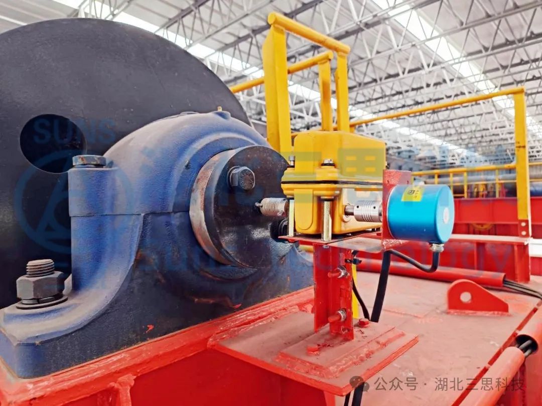 在起升機(jī)構(gòu)小車架的平衡滑輪鋼絲繩上,安裝智能檢測傳感器,當(dāng)出現(xiàn)歪拉斜吊后,系統(tǒng)輸出控制限制起升機(jī)構(gòu)運(yùn)行,直至調(diào)整吊鉤正常角度起吊后,起升機(jī)構(gòu)方可運(yùn)行。