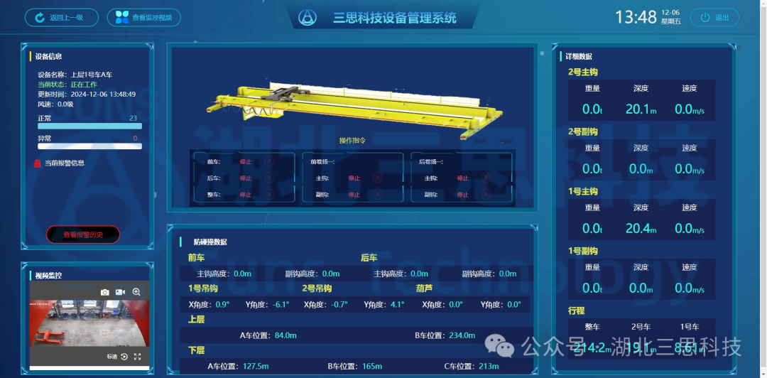 通過RTK定位技術(shù),將上下層橋機(jī)位置精確定位,實(shí)現(xiàn)橋機(jī)在軌道位置的準(zhǔn)確把控,再通過系統(tǒng)對其他機(jī)構(gòu)空間位置的監(jiān)測,從而實(shí)現(xiàn)系統(tǒng)上下層橋機(jī)實(shí)時防碰撞功能。