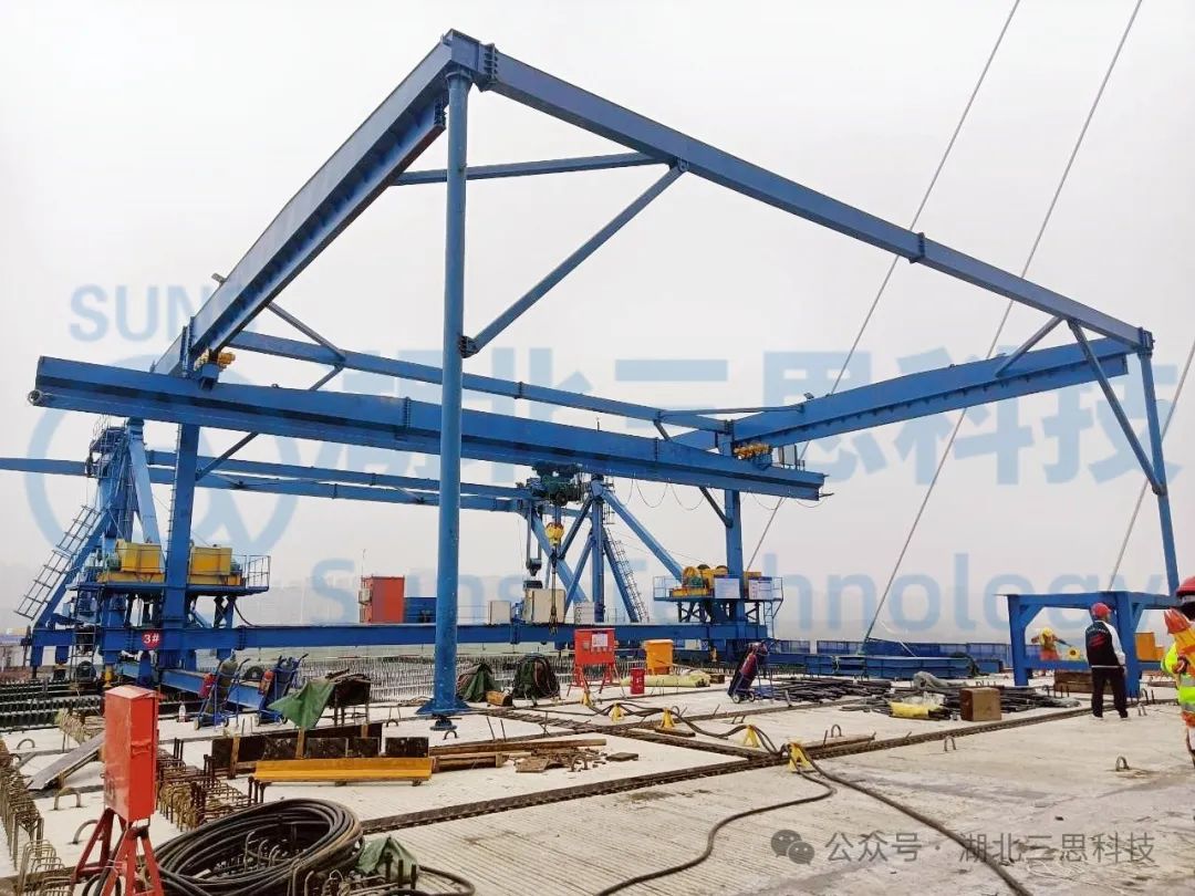 湖北三思科技此次參與的是一臺起重能力達900T的運架一體機,設備位于湖南某橋梁建設現場。