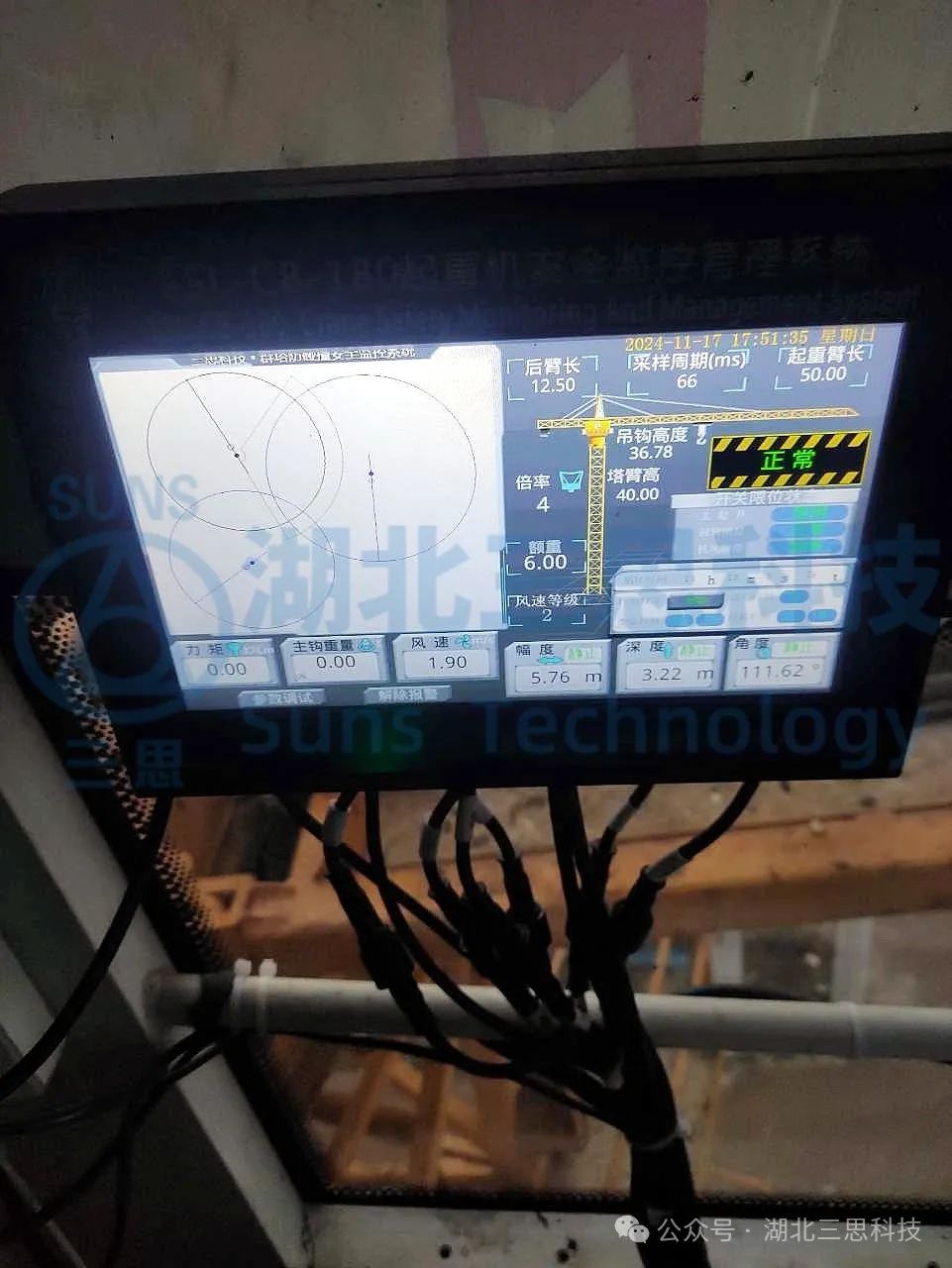 系統(tǒng)實(shí)時(shí)顯示塔機(jī)的運(yùn)行狀況參數(shù),如:吊重、力矩、風(fēng)速、幅度、高度、回轉(zhuǎn)、累計(jì)工作時(shí)間、累計(jì)工作次數(shù)、操作指令、通訊狀況等,以及實(shí)時(shí)的個(gè)塔機(jī)位置,可以讓駕駛員全方位掌握塔機(jī)的實(shí)時(shí)運(yùn)行狀況,提高了操作的安全性。